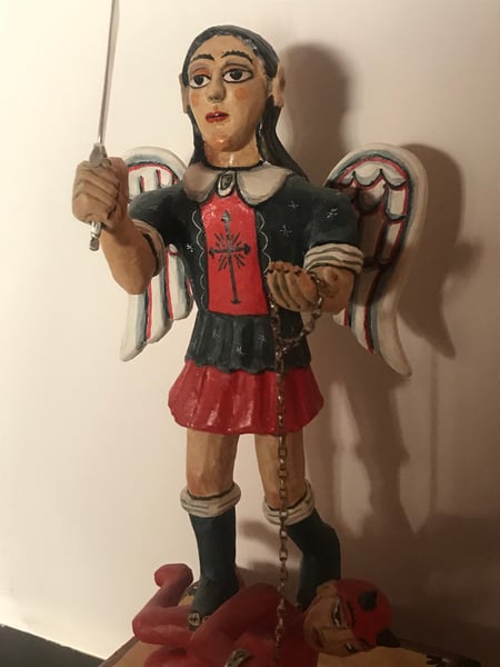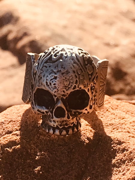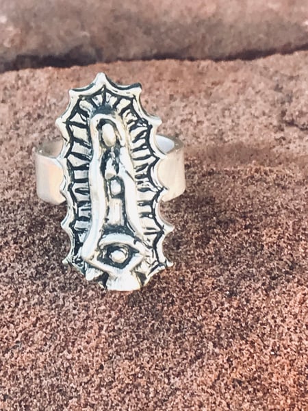 Hand Carved Silver Guadalupe Ring with Plain Band